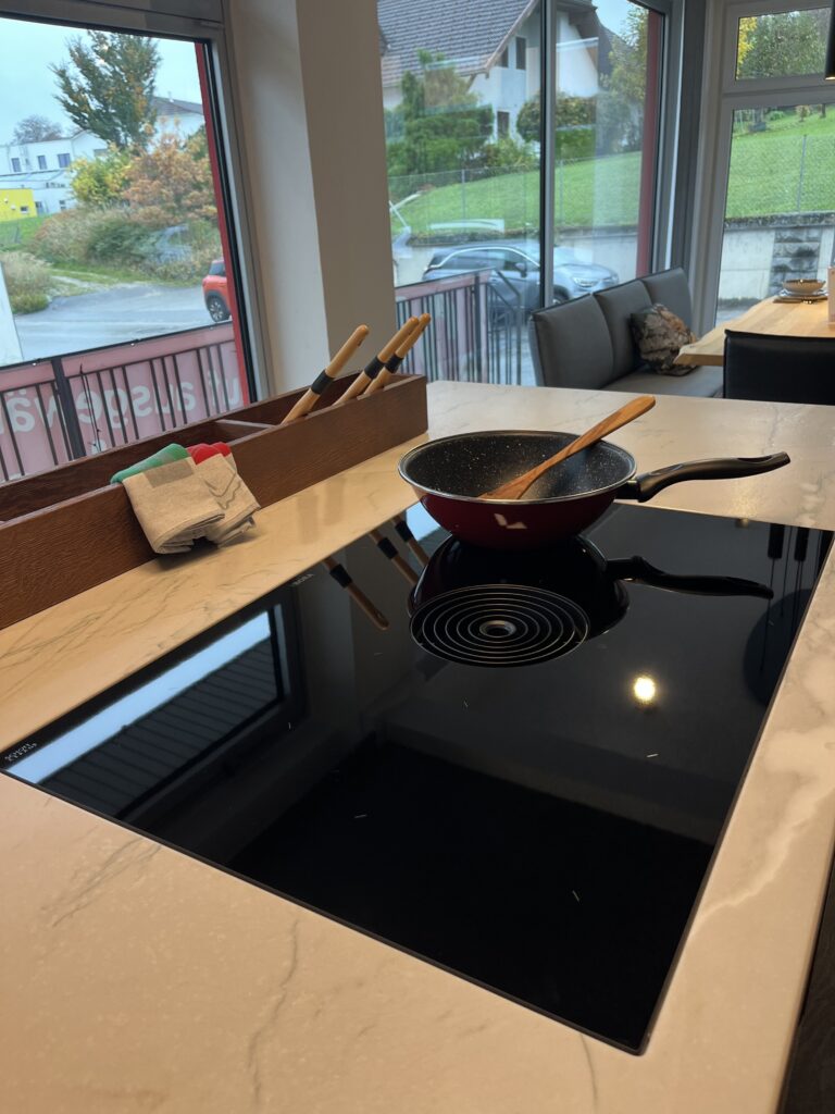 zwei runde Kochzonen und zwei als Brückenfunktion