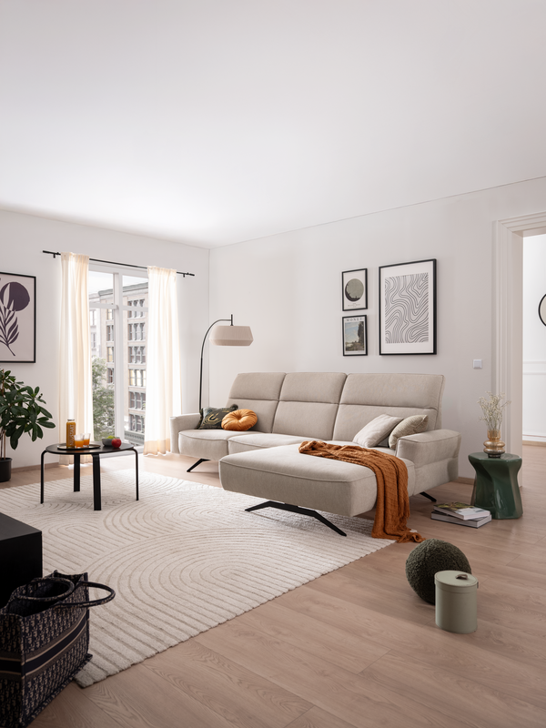 in hochwertigem Bezug S-ZGM, Metallfuß M356S schwarz, Sitzaufbau Taschenfederkern mit KS Auflage, ca. 304 x 170 cm, Aufpreis für:     Kopfstützenverstellung + 270 €
