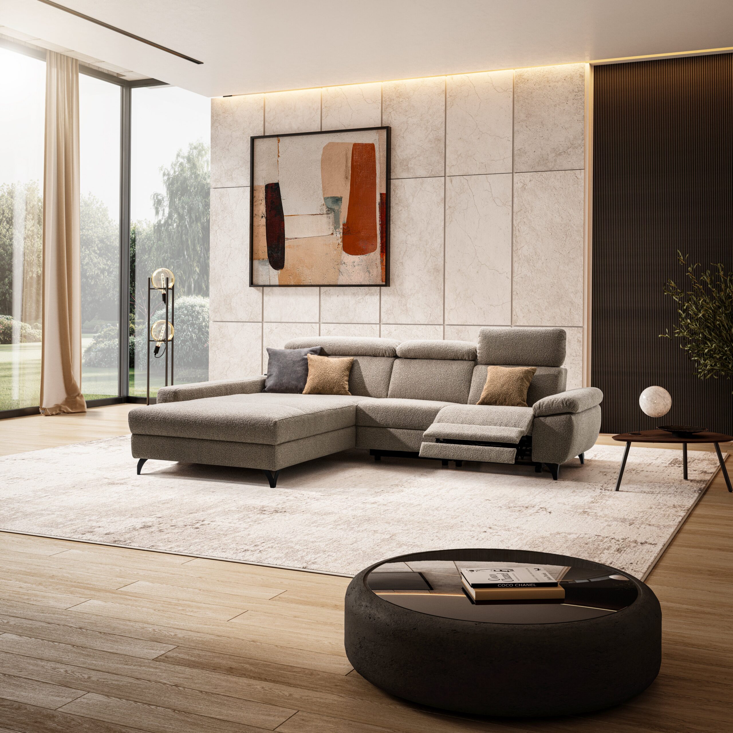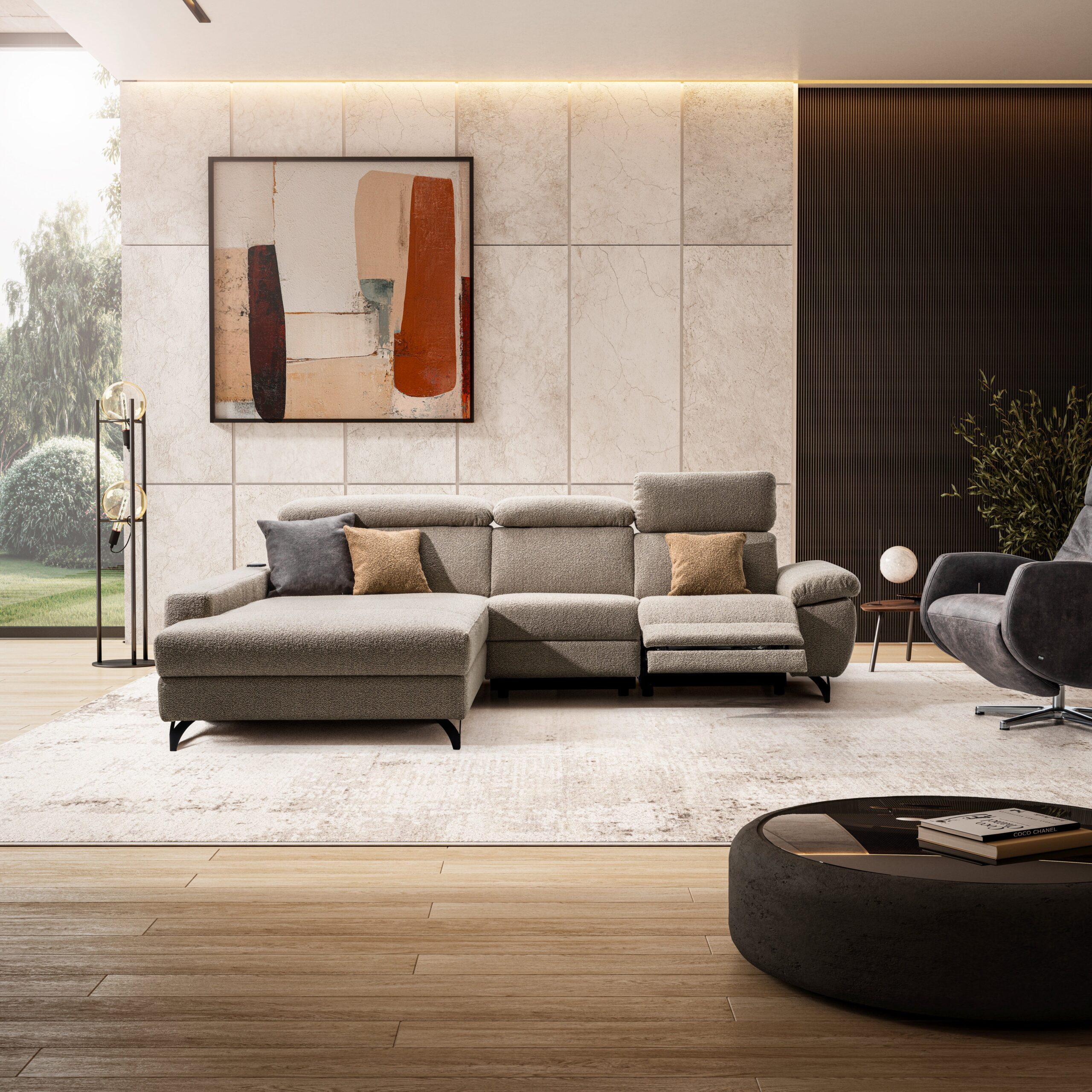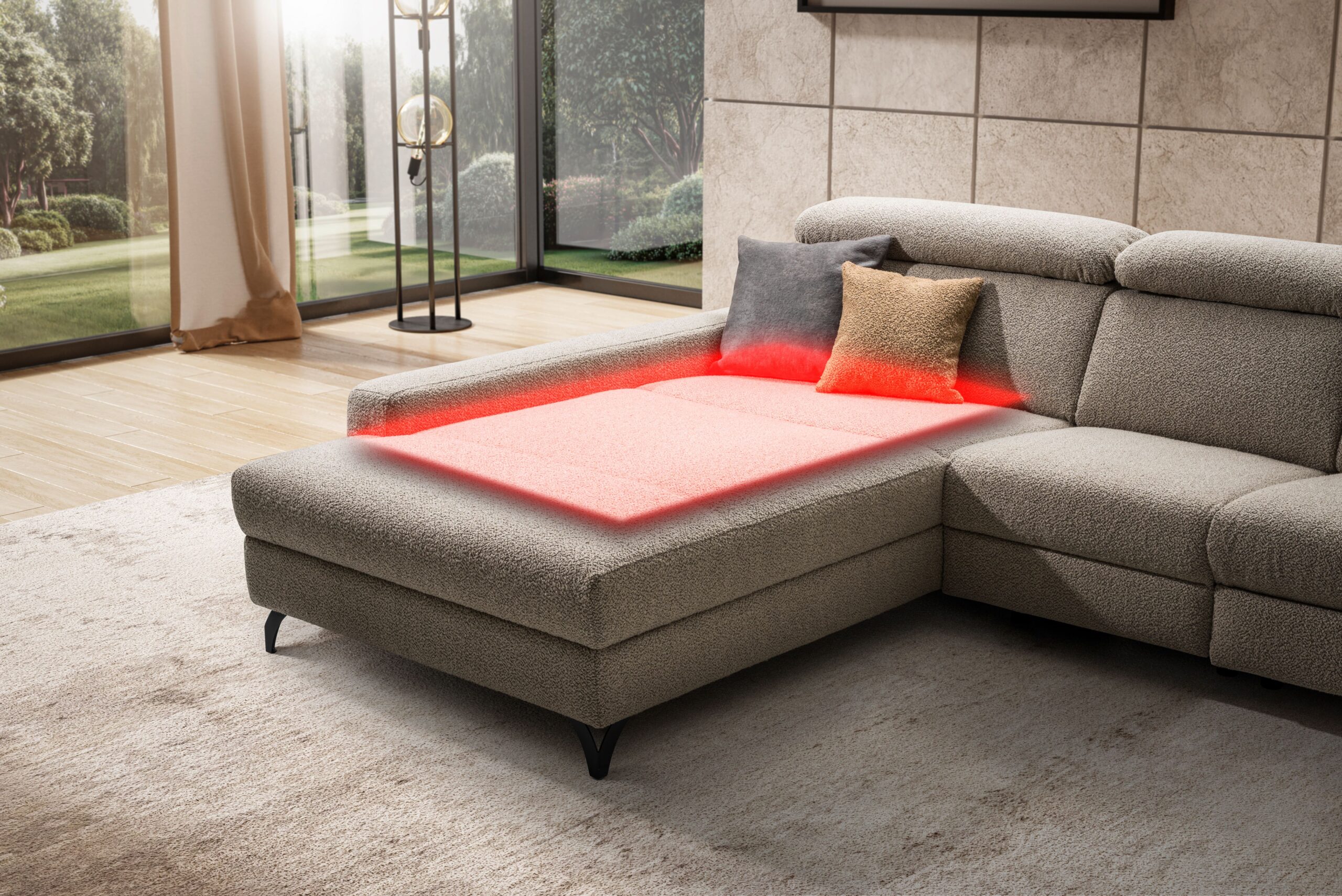Österreichische Qualität in pflegeleichtem und top aktuellem Bezug!, Fuß schwarz matt, Sitzhöhe 46 cm, Armteil klappbar, Kopfstützen manuell verstellbar, ca. 206 x 281 cm, Die Polstergruppe Rialto ist in vielen verschiedenen Farben und Stoffen erhältlich!, Mehrpreis für: Relaxsitz +€ 699,-, Powerstation +€ 329,-