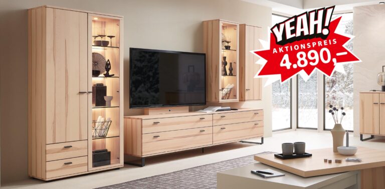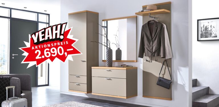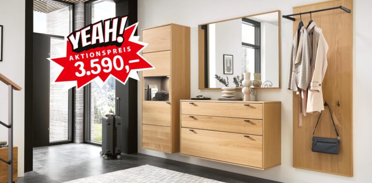 stylischer Passepartout-Rahmen in Metall schwarz + € 400-, verschiedene Kommoden und Kleiderschränke in 3 Breiten komplettieren das Programm Boston.