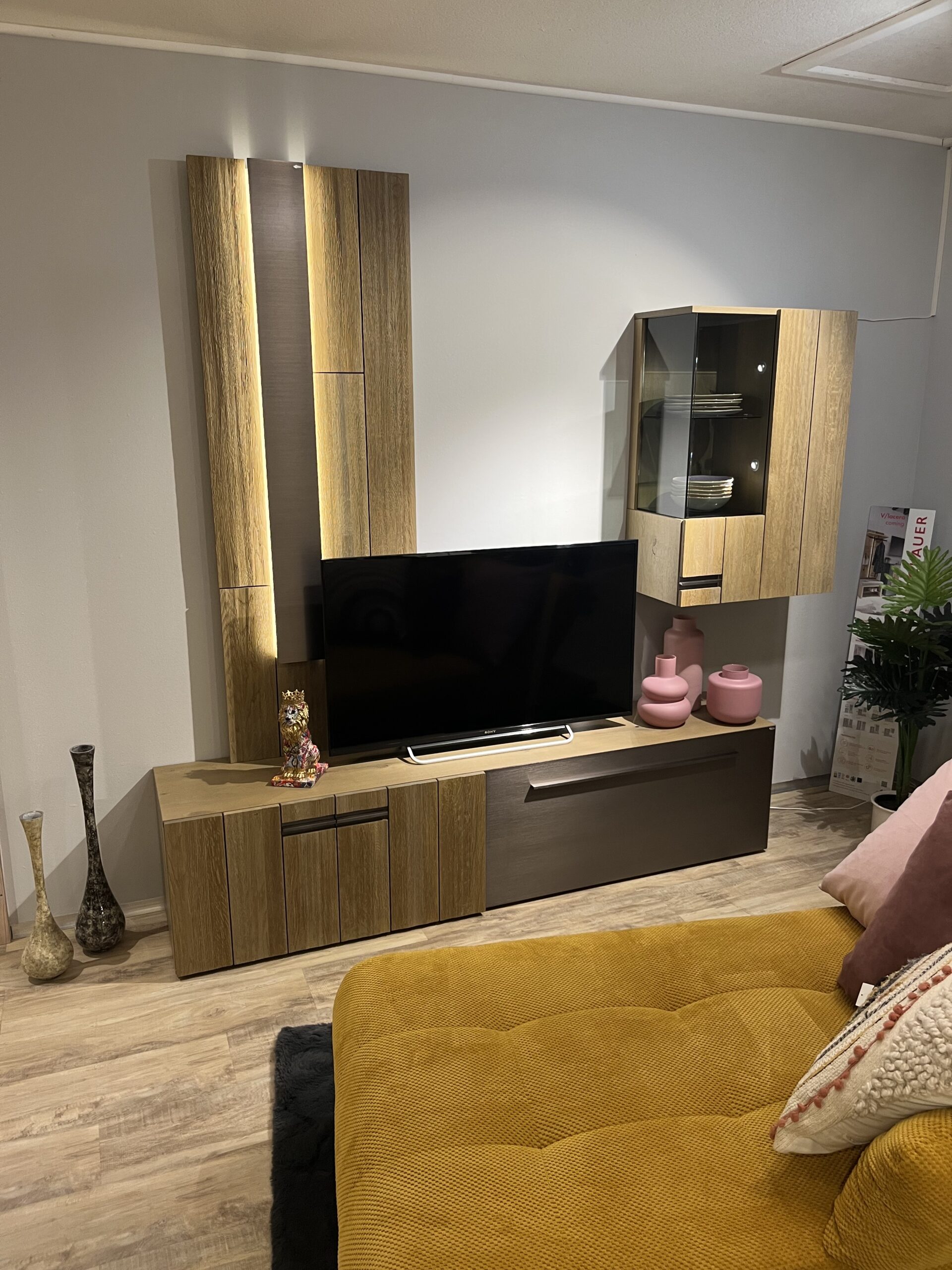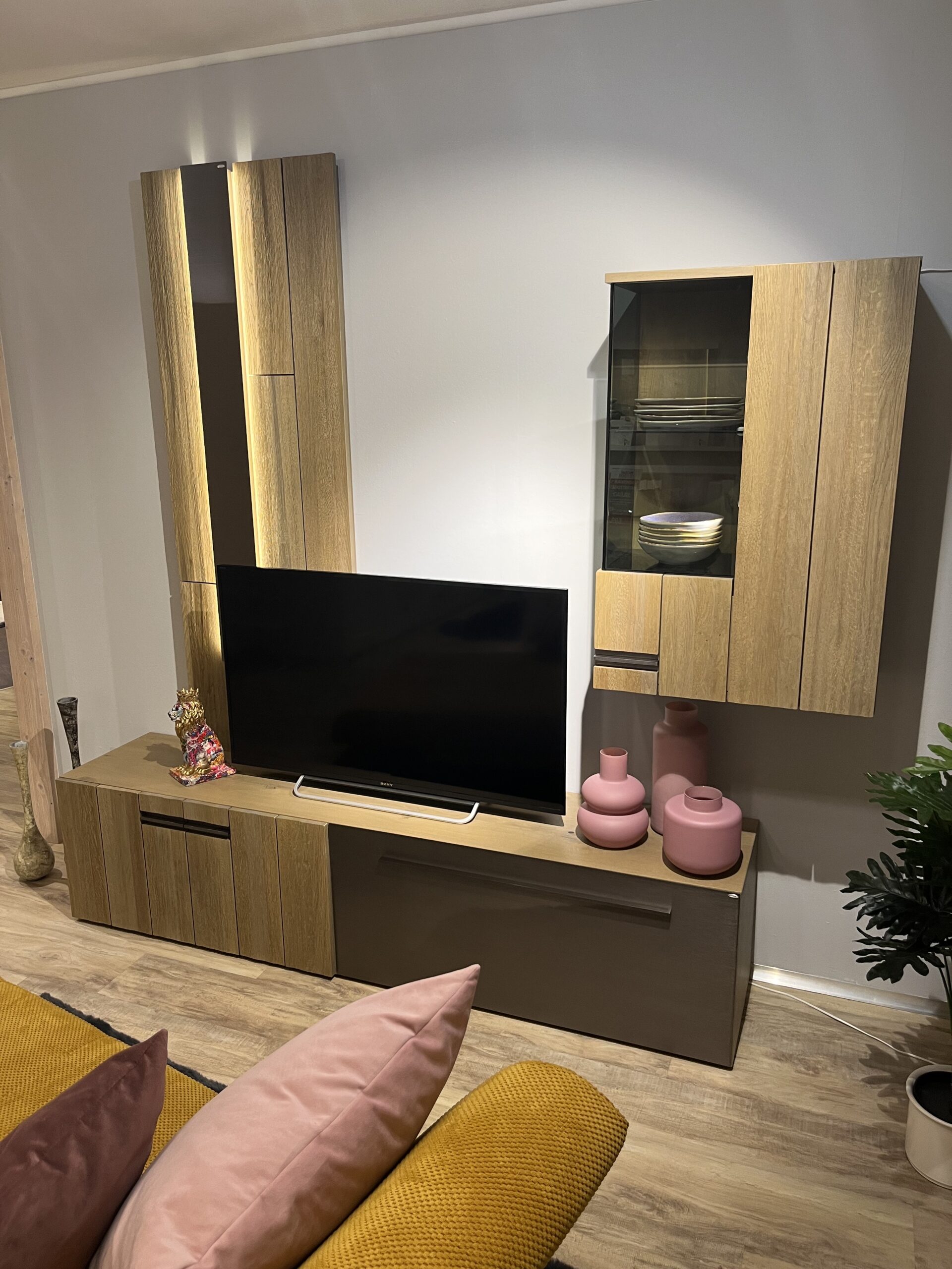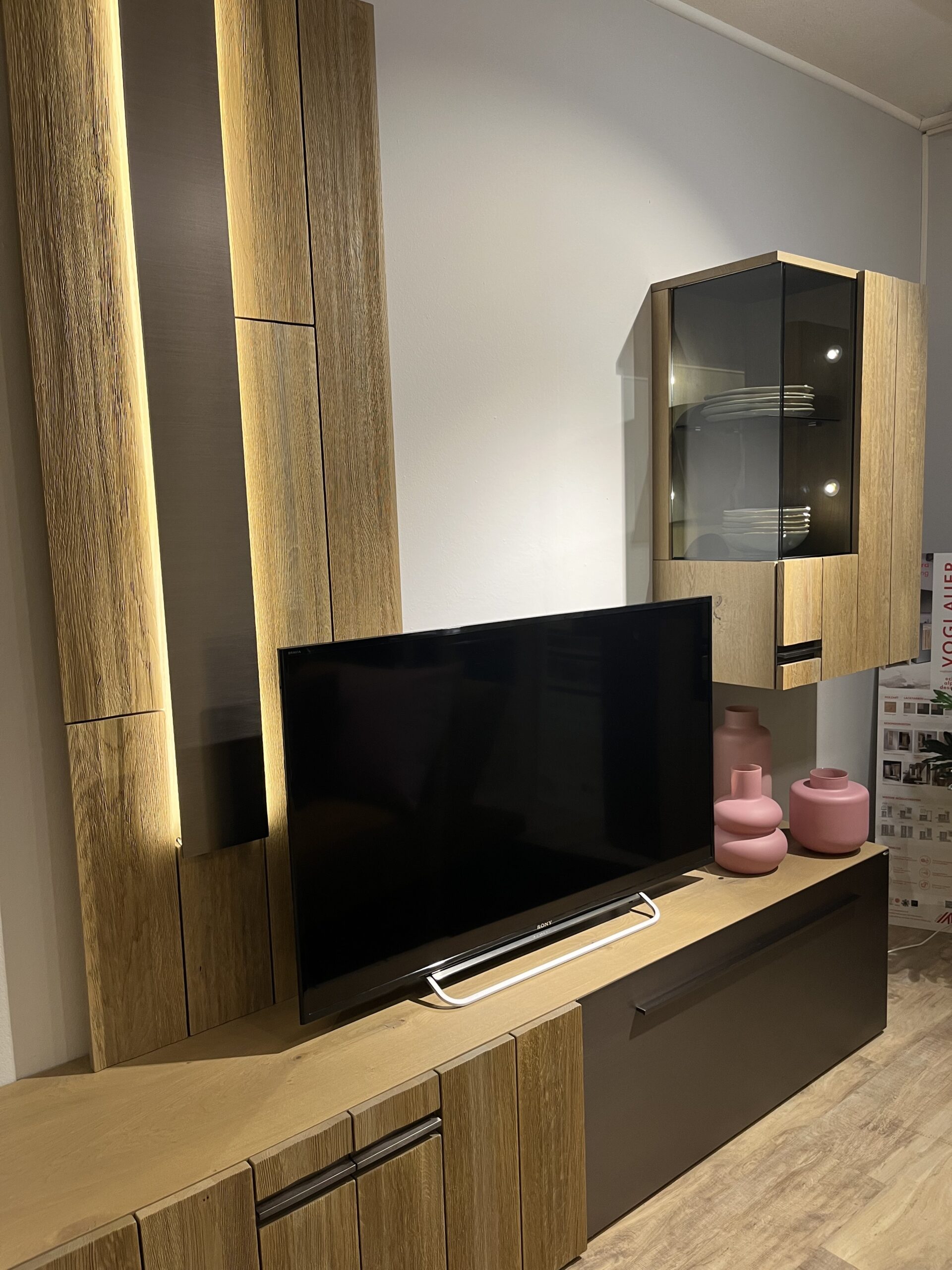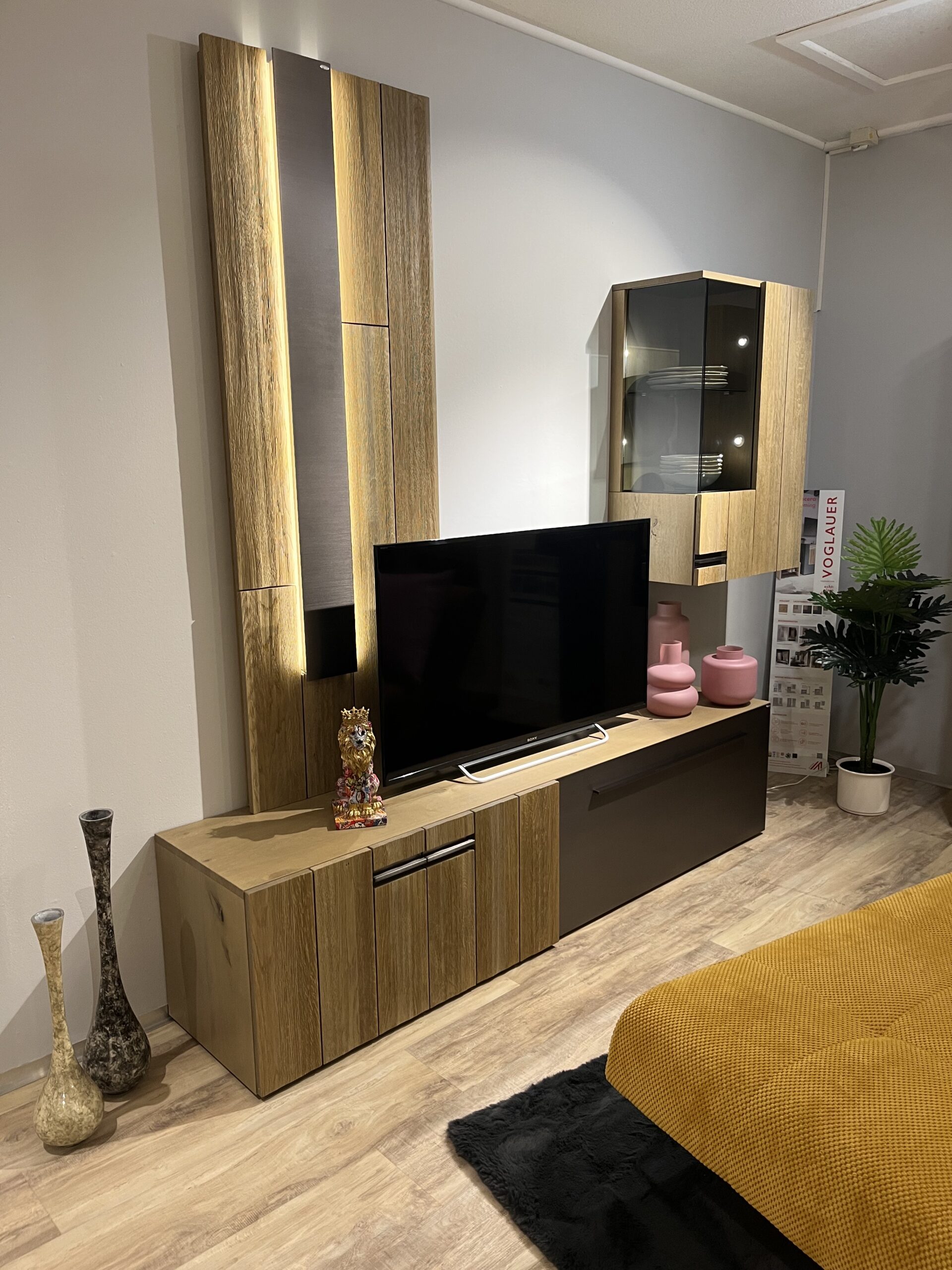 Wohnvorschlag Vgalvino in Alteiche rustico Schwemmgrau lackiert, Metallakzent, LED-Beleuchtungen inkl. Schalter, Kabeldurchlass,